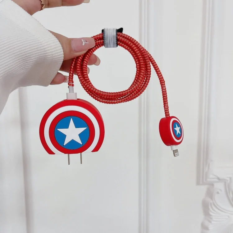 Captain-America Cable Protector with 3D Cute Pattern for iPhone Charger