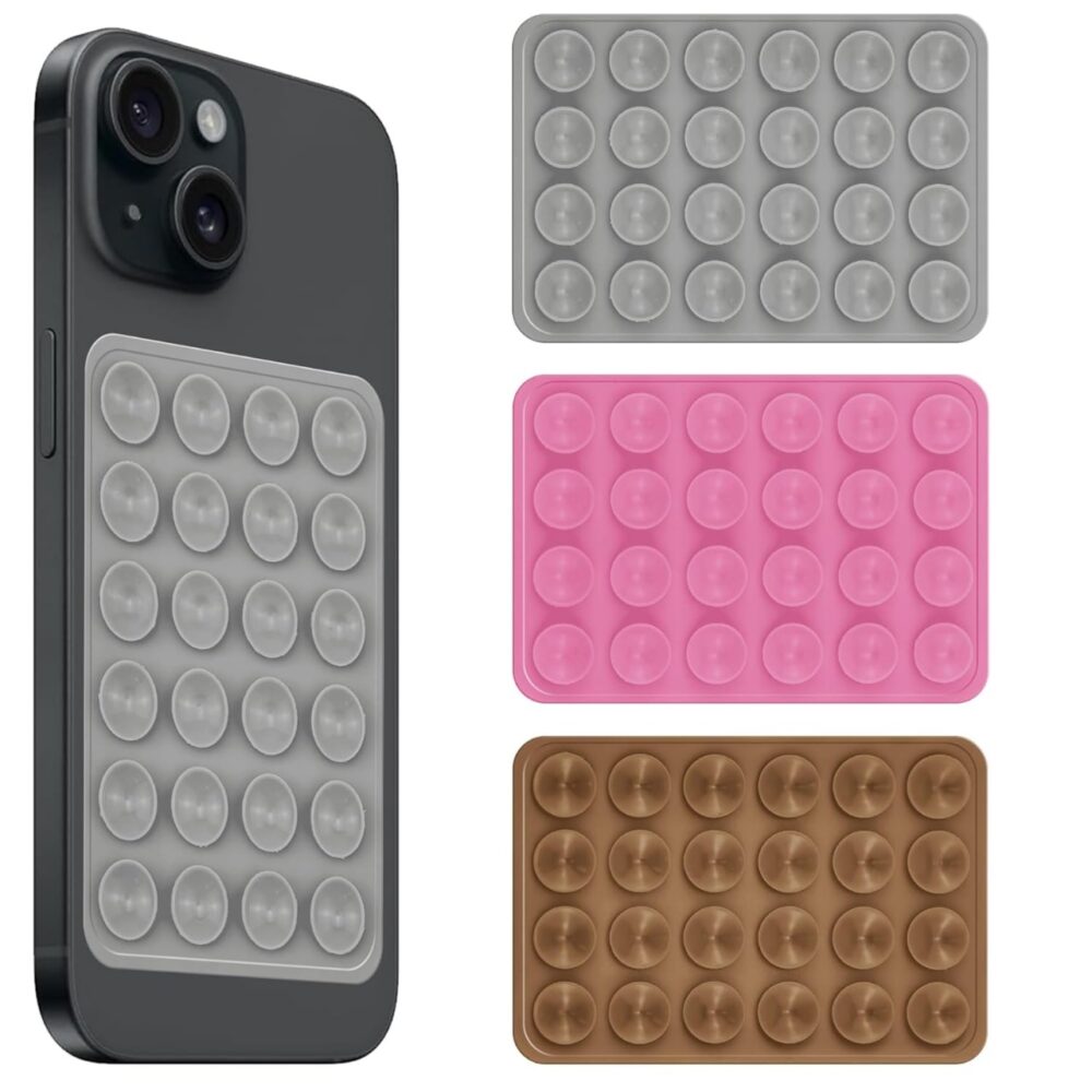 phone Trendz Silicone Suction Phone Case Mount, Silicon Adhesive Phone Grip for Smartphones, Hands-Free Mirror Shower Phone Holder for Selfies, Reels. (Grey+Pink+Brown)